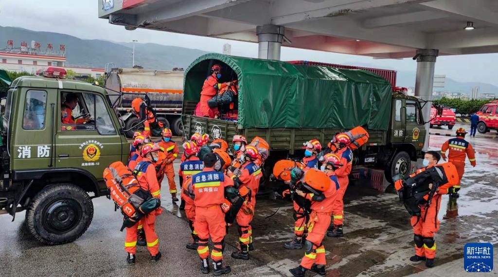 4月2日,消防救援人员赶赴现场。新华社发(云南省消防救援总队供图)