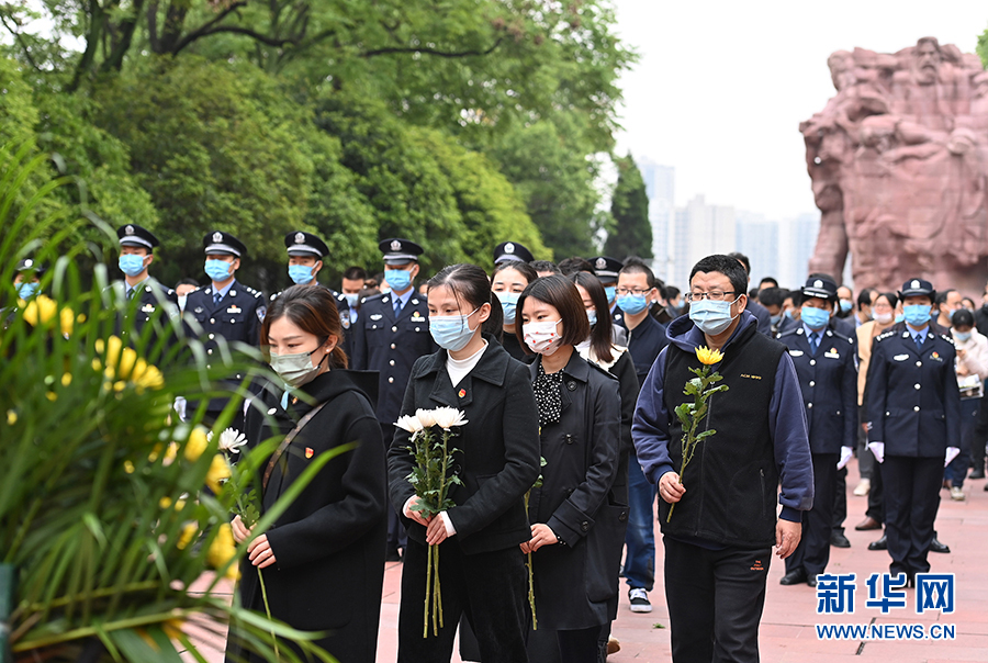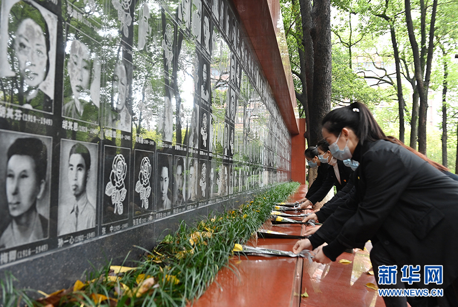 2022年4月2日,在位于重庆市沙坪坝区的歌乐山烈士陵园,社会各界在此举行清明祭英烈活动,深切缅怀革命先烈。新华网发(孙凯芳 摄)