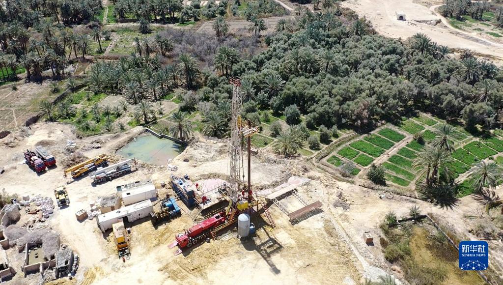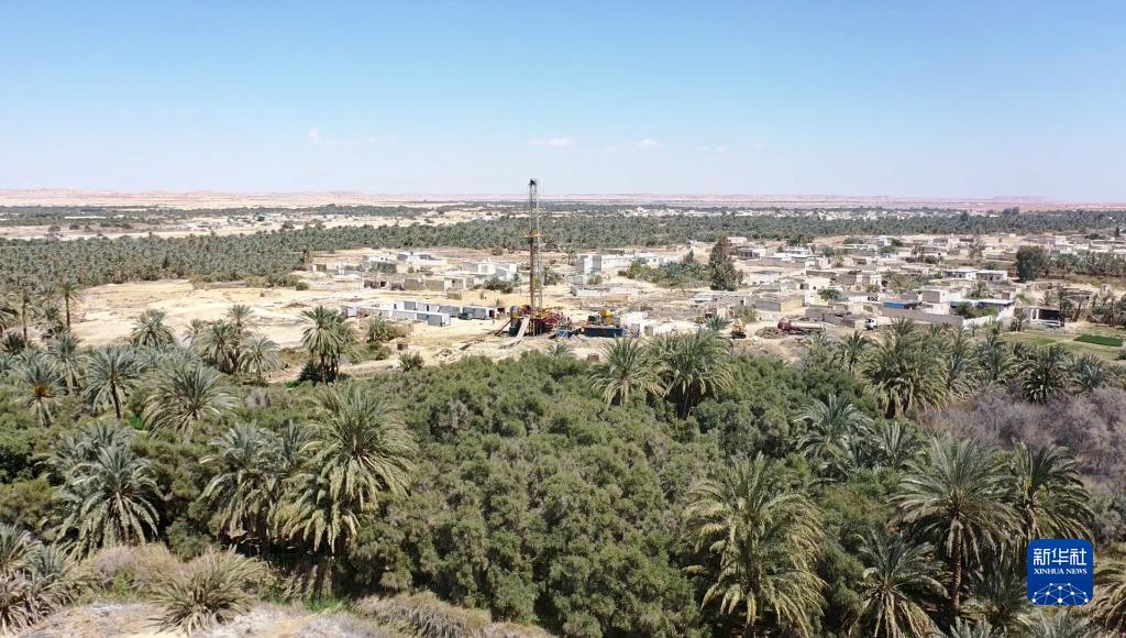 这是3月25日在埃及锡瓦绿洲拍摄的中国中曼石油埃及分公司锡瓦深水井项目施工现场(无人机照片)。新华社记者 隋先凯 摄