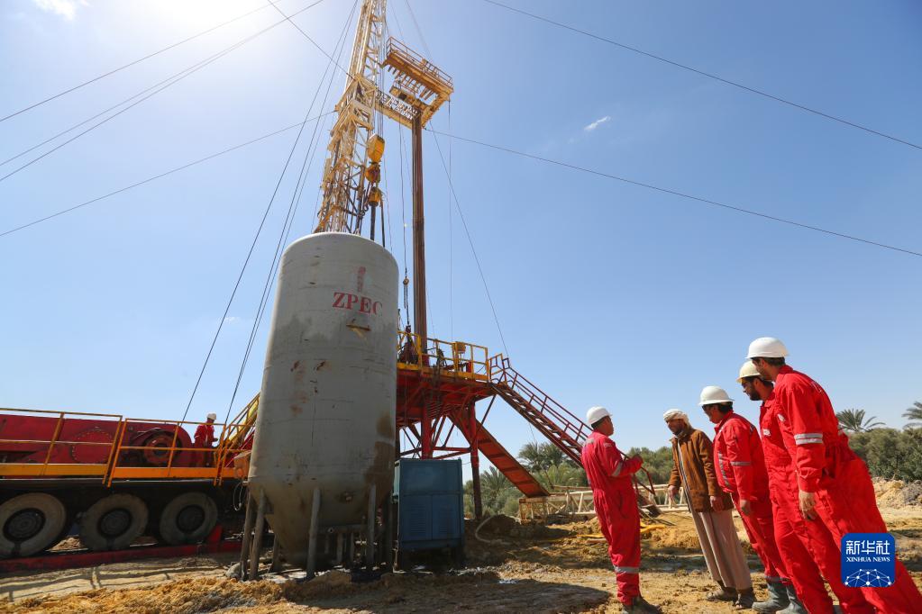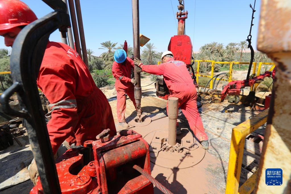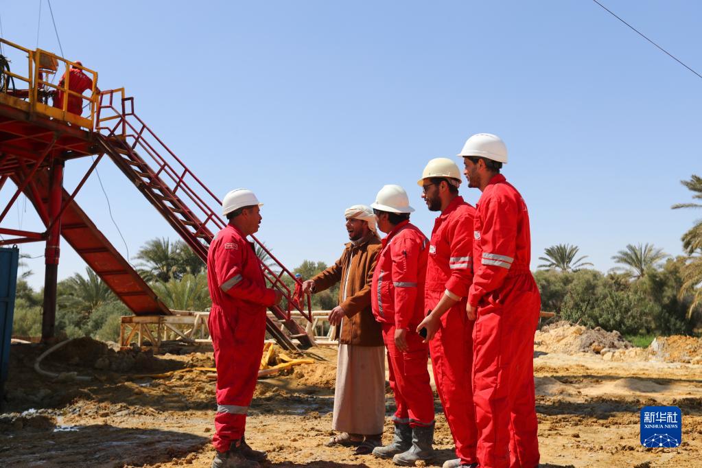 3月25日,在埃及锡瓦绿洲,中国中曼石油埃及分公司工人在锡瓦深水井项目施工现场作业。新华社记者 隋先凯 摄