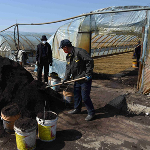 4月2日,在友好村乌拉巴街屯,村民正在将土运进大棚。新华社记者 梁书斌 摄