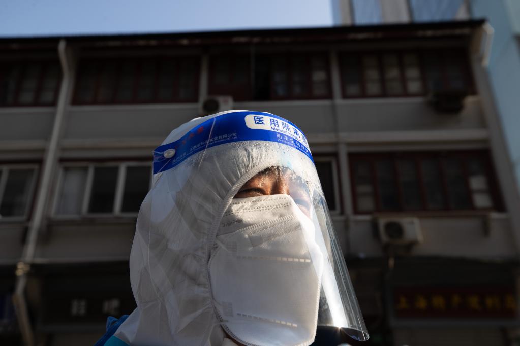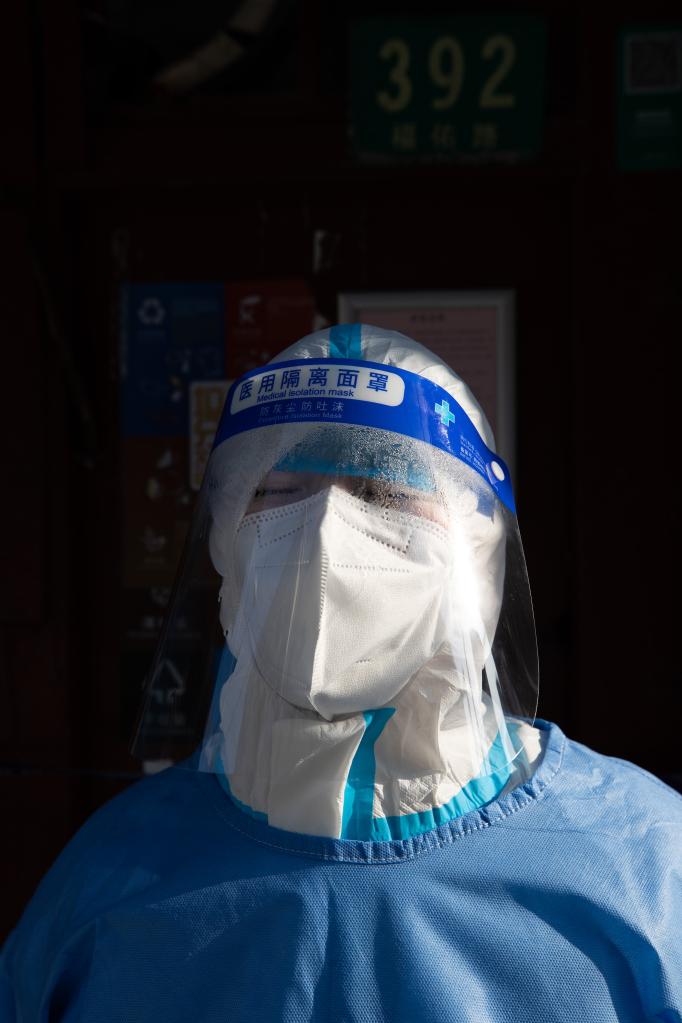 “太好了,都是‘一道杠’。”广福居委会干部俞静芳上楼发放抗原检测试剂,指导他们做完检测,出来后舒了口气,面罩上都是水汽。新华社记者 金立旺 摄