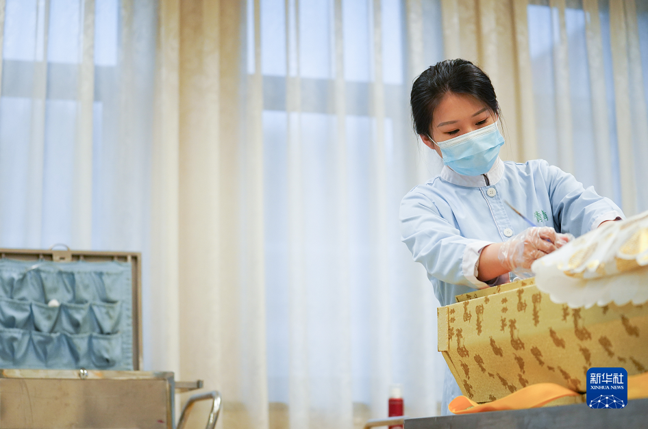 一位入殓师在为一位逝者化妆整容。新华社记者鞠焕宗摄