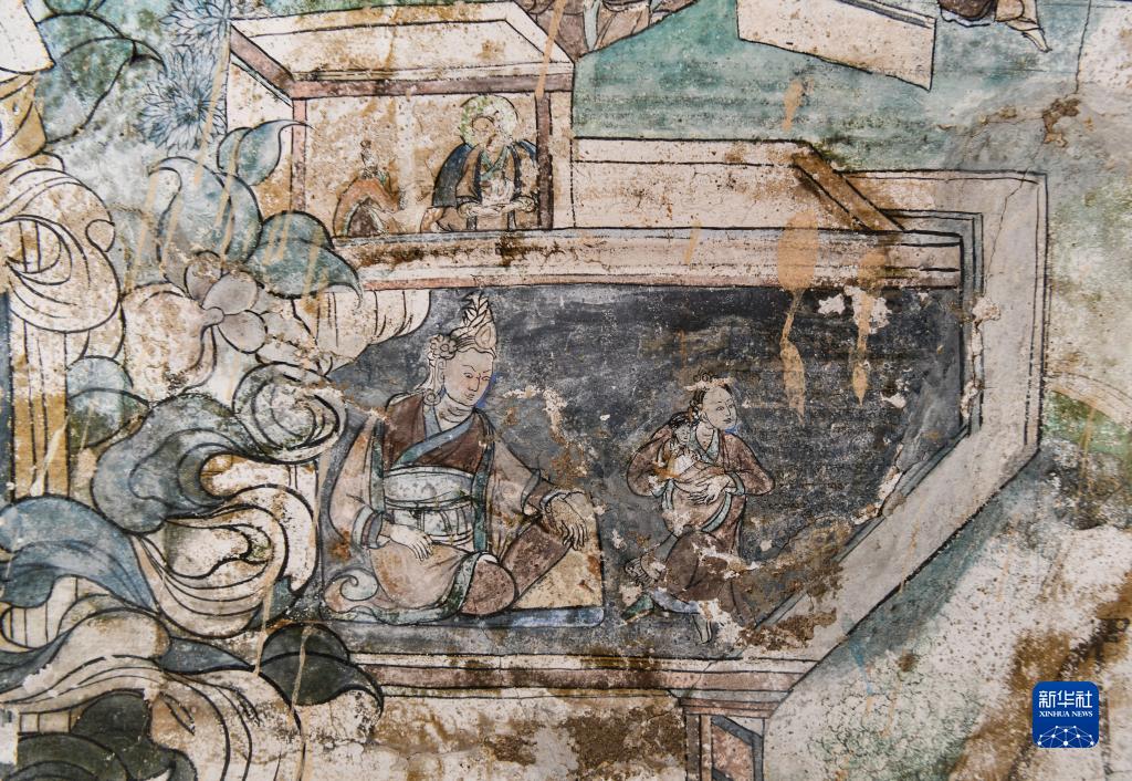 桑耶寺吐蕃王朝赞普赤德祖赞篇壁画中“宴前认舅”的故事(3月29日摄)。新华社记者 晋美多吉 摄