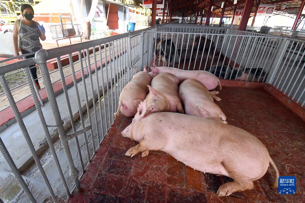 这是4月4日在古巴哈瓦那举办的古巴国际农牧业展上拍摄的猪。