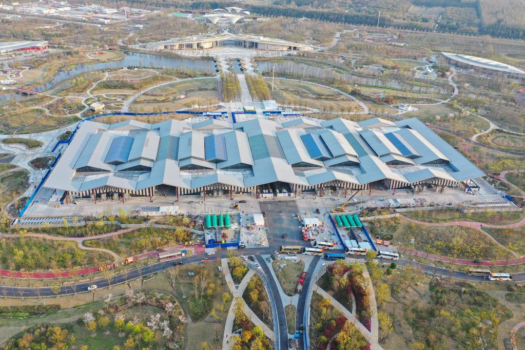 航拍上海崇明区花博园复兴馆方舱医院。新华社记者 丁汀 摄