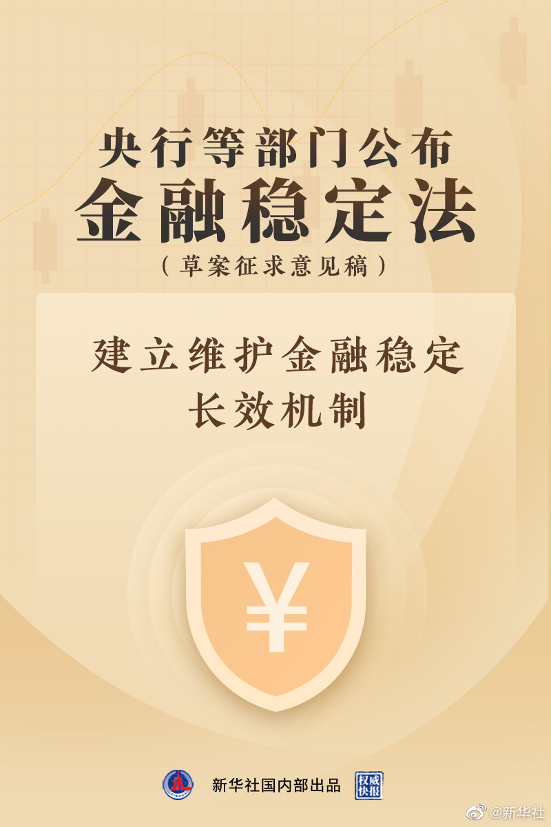 4月6日,中国人民银行等部门公布金融稳定法(草案征求意见稿),明确国家金融稳定发展统筹协调机制(国务院金融委)职责,压实各方金融风险防范化解和处置责任,强化金融风险防范和早期纠正,提出建立处置资金池,设立金融稳定保障基金,旨在建立健全高效权威、协调有力的金融稳定工作机制,进一步筑牢金融安全网,坚决守住不发生系统性风险的底线。(记者吴雨,海报设计杨轶群)