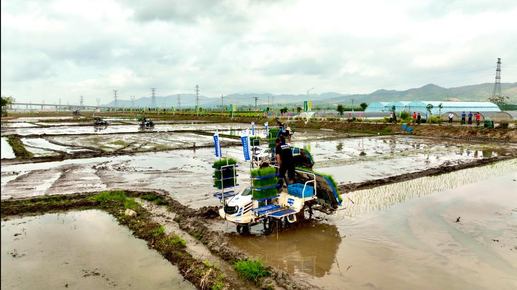 海南农乐南繁科技有限公司工作人员开展机械化插秧。(受访对象供图)