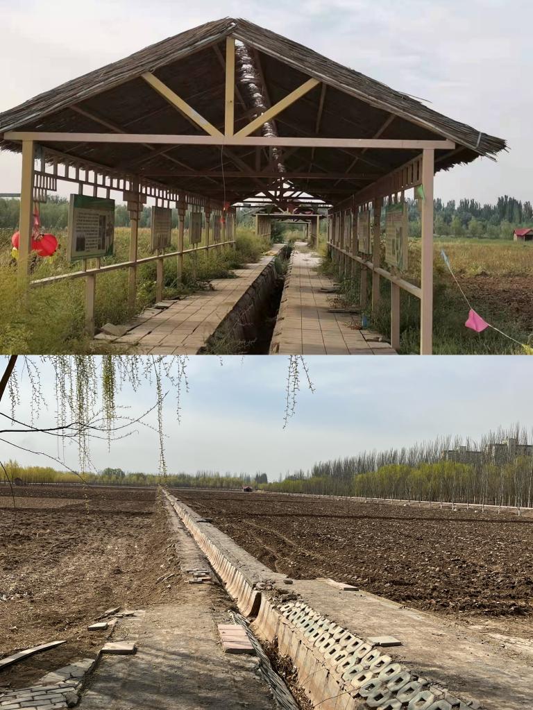 “梦回田园”观景长廊拆除前后对比图。(上图为资料照片,下图新华社记者任玮 摄)