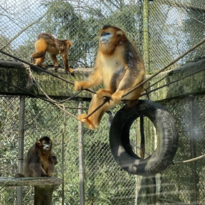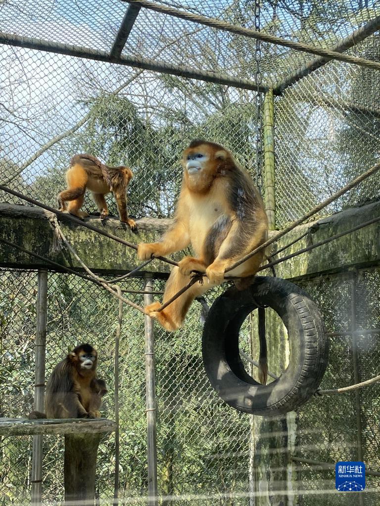 在雅安市碧峰峡野生动物园拍摄的“12·3”案涉案川金丝猴(2022年3月4日摄)。它们被雅安警方追回后,寄养在该动物园。新华社记者 吴光于 摄