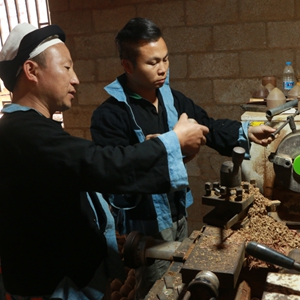 今年46岁的谢友明是瑶山家喻户晓的“陀螺王”。在瑶山陀螺加工厂,谢友明跟徒弟正在赶制一批准备发往江苏的陀螺。“之前我出去参加陀螺比赛认识了很多教练,现在不少外省的大学、体育局都在我们这里订货。”谢友明说。