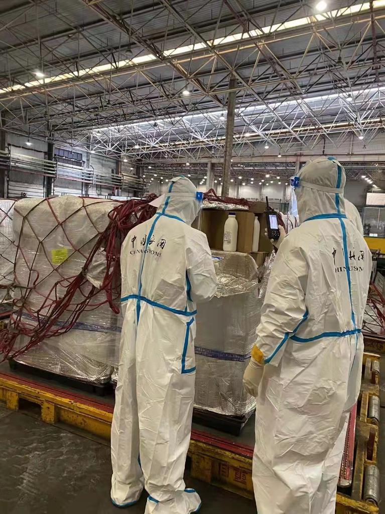 4月3日,浦东国际机场海关增派7名关员到位,队伍扩充至14人。统计显示,从3月28日至4月7日,这支队伍加急处理了400多票进出口货物。中国制造的抗原检测试剂盒,来自世界各地的水产、牛奶、种子、药品原材料等,按程序经过查验,顺利奔向各自目的地。