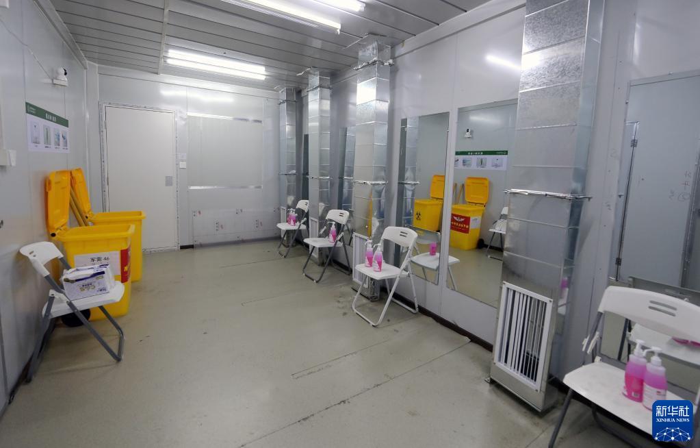 4月9日,医务人员通道内防疫设施已经准备就位。新华社记者 李贺 摄