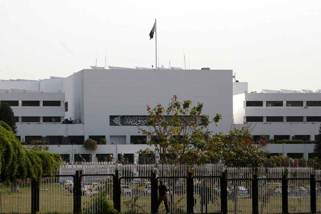 这是4月3日在巴基斯坦首都伊斯兰堡拍摄的国民议会大楼。新华社发(艾哈迈德·卡迈勒摄)