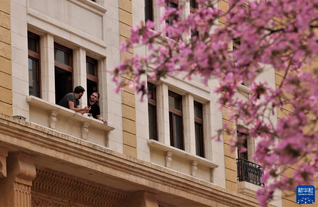 近日,黎巴嫩首都贝鲁特闹市区商业街两旁的风铃木花盛开,繁花似锦。