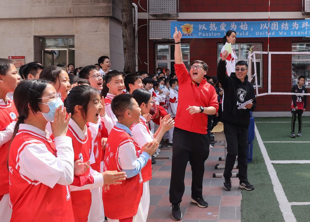 排球场建起来了,标志杆竖起来了,排球课开起来了。不过,排球在校园里还没有火起来。李世光眉头一皱,计上心来。他先组织教职工气排球比赛,既把老师们对排球的热情点燃起来,又吸引到孩子们羡慕的目光。2021年的寒假之前,学校宣布了要在初一年级举办排球联赛的消息,李世光有意将一些班级的备战动态和视频发到群里,刺激其他班级加入“军备竞赛”。班主任们不甘落后、组织训练,家长们帮忙租场地、当陪练。春季开学之后,学校又通过海报评选、大屏展示等方式营造比赛氛围,第一届排球联赛不仅成功举办,而且深受好评。