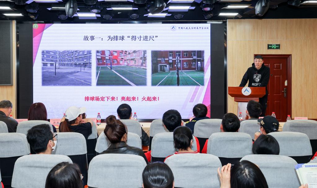 4月8日,人分排球特色课程项目负责人李世光老师,在校园排球课程研讨会上分享《有温度的人分校园排球故事》。他带领团队对标体育学科核心素养,精进“学赛练”一体化的课程实施路径,推出了学校排球课程全要素、全过程、全人员、全学科、全身心、全方位的“六全”模式。新华社记者殷刚摄