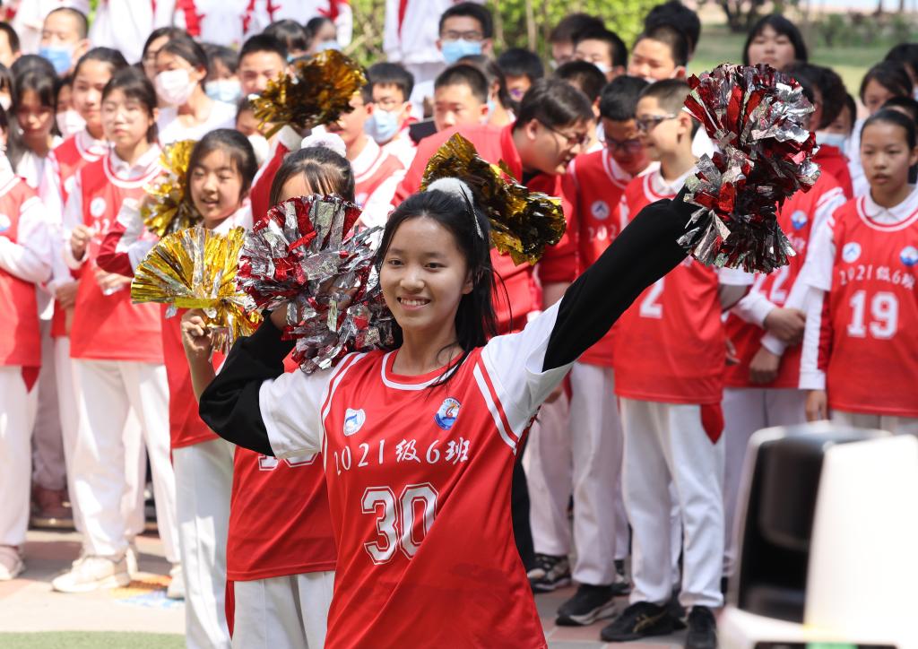 4月8日,中国人民大学附属中学分校举行的“团结杯”排球·啦啦操联赛的决赛现场。新华社记者殷刚摄