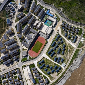 位于怒江边的云南省怒江傈僳族自治州泸水市大兴地镇格力小学(2020年5月18日摄,无人机照片)。新华社记者 江文耀 摄