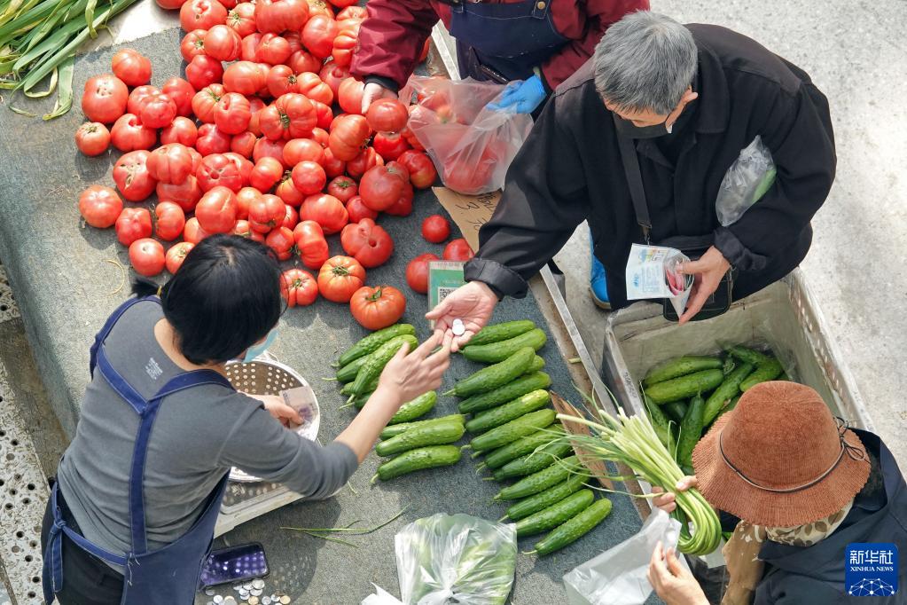4月11日,顾客在山东烟台一家市场买菜。新华社发(唐克摄)