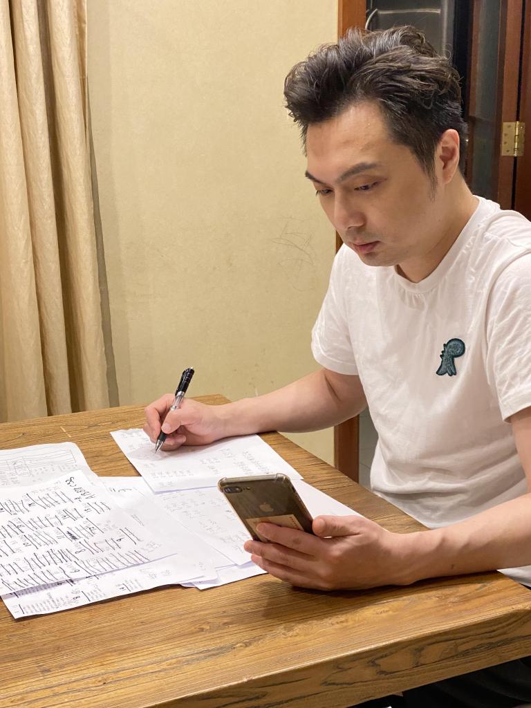 为了帮助有需要的邻居,台胞谢家琪利用自身资源当起了社区团购“团长”。统计工作是团购过程中最繁琐的环节。(受访者供图)