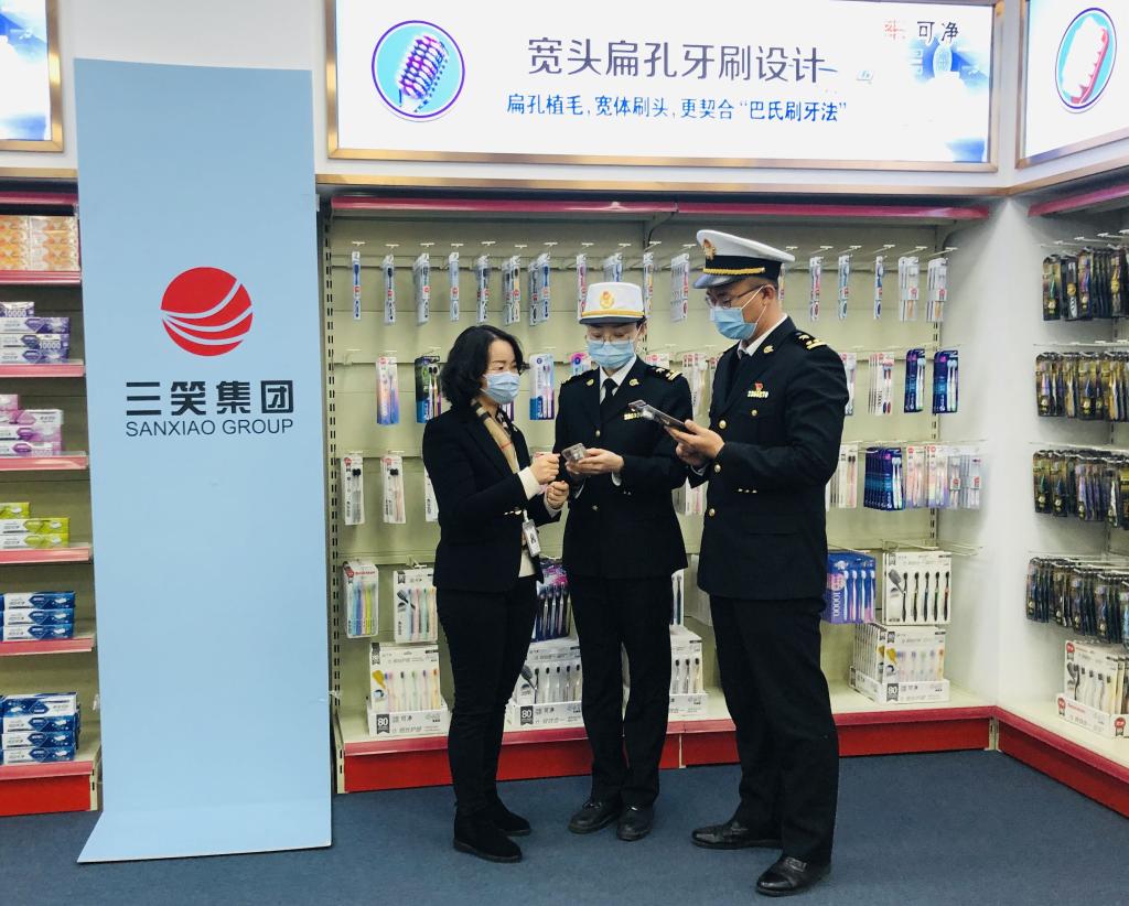 图为南京海关关员前往企业宣讲RCEP政策。(受访者供图)