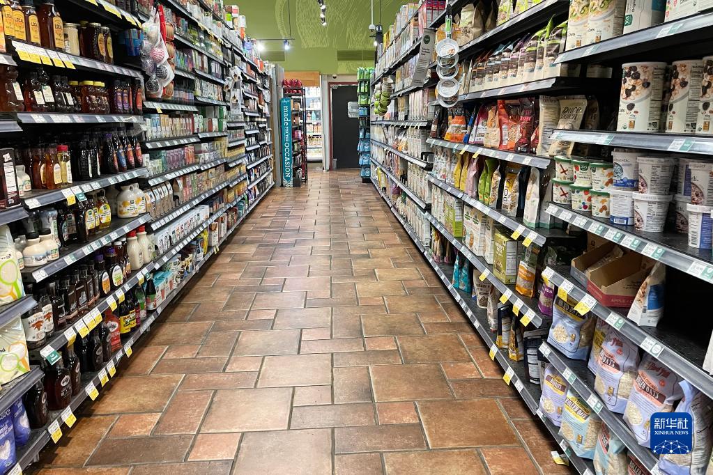 这是4月12日在美国弗吉尼亚州阿灵顿拍摄的一家食品超市的货架(手机照片)。新华社记者刘杰摄