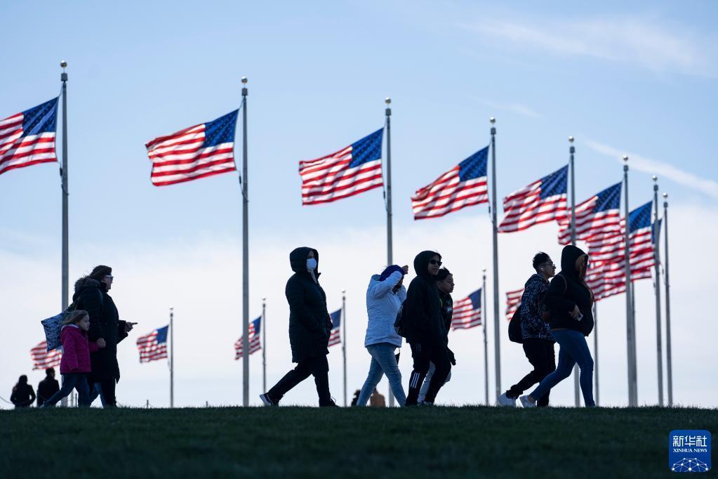 这是3月29日,行人走在美国首都华盛顿的国家广场。新华社记者 刘杰 摄