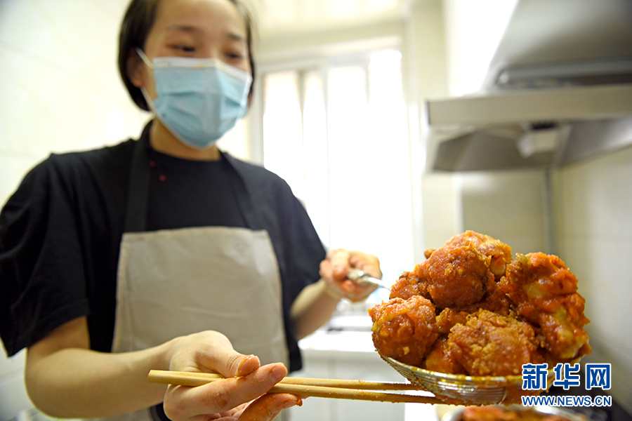 4月13日,刘云展示自己炸的鸡腿爱心餐。