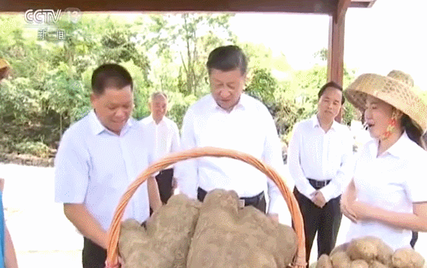 这是2018年4月13日,习近平在海口市秀英区石山镇施茶村考察时的情景。当时接近正午时分,习近平顶着骄阳看望农民群众,考察乡村振兴战略实施情况。
