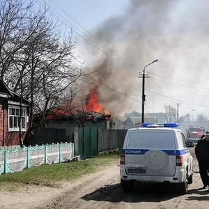 这张4月14日的视频截图显示的是俄罗斯布良斯克地区克利莫沃遭袭后起火的房屋。新华社/塔斯社