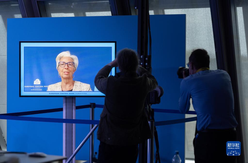 4月14日,欧洲央行行长拉加德以视频方式在德国法兰克福欧洲央行总部举行的新闻发布会上讲话。新华社发(欧洲央行供图)