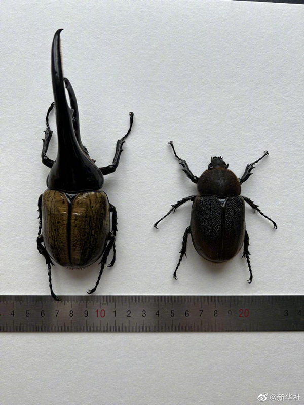 记者14日从成都海关获悉,该关所属成都邮局海关查获4头活体甲虫,经鉴定为长戟犀金龟,包括雌雄各两头,其中最大的一头身长175毫米。
