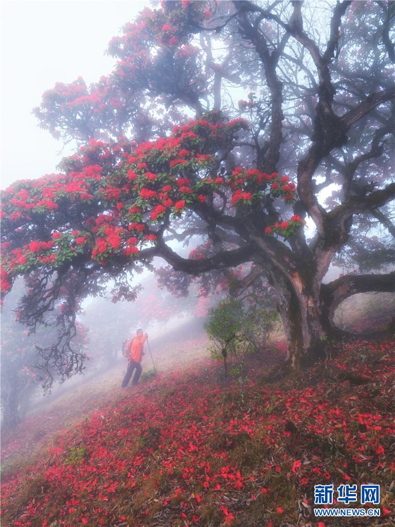 近期,云南大理苍山上的杜鹃花竞相绽放,漫山红遍,层林尽染。特别是雾中看花,别有一番韵味。(完)新华网发(杨继培 王金灿摄影报道)