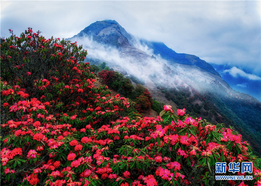 云南大理苍山上的杜鹃花竞相绽放。(4月3日摄)。