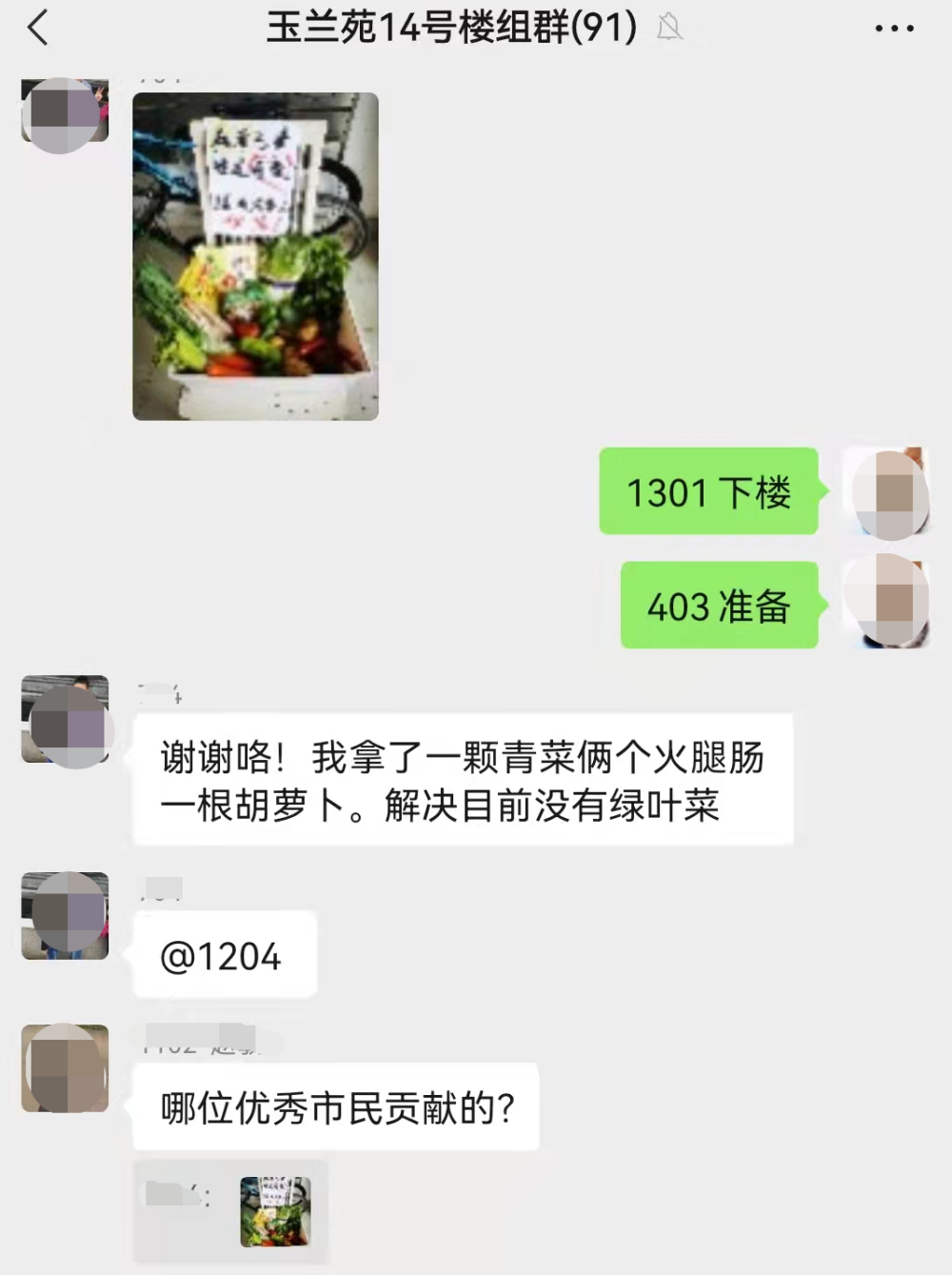 “如果是易腐烂或需放冰箱保存的食品,先在群里说一下,若有人需要再拿出,避免浪费;每次物品增减,可以由当事人拍照分享在群里,时时掌握菜篮子情况,避免过多的人员流动。”