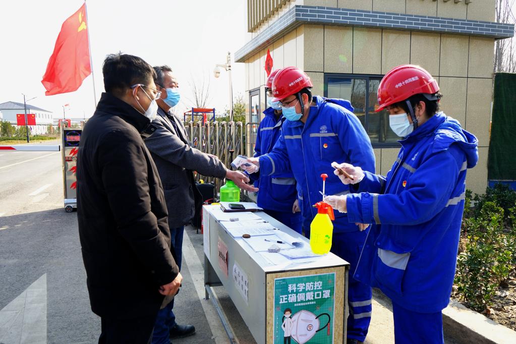 中铁十四局集团员工为进入施工现场的人员登记健康信息。(受访单位供图)
