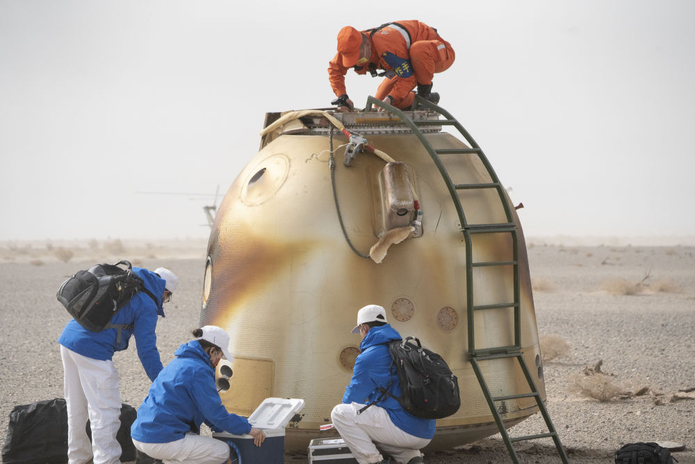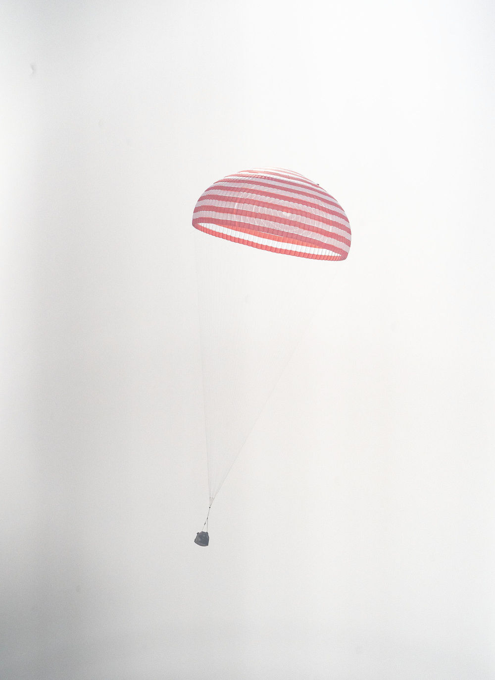 ↑4月16日,神舟十三号载人飞船返回舱在东风着陆场预定区域成功着陆。