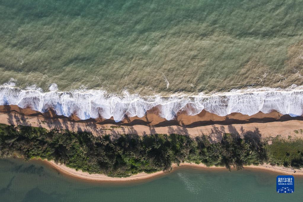 这是4月9日拍摄的博鳌亚洲论坛永久会址旁的玉带滩(无人机照片)。