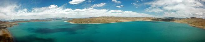 这是在特布拉村拍摄到的羊卓雍错。新华社记者 姜帆 摄(无人机合成照片,4月16日摄)
