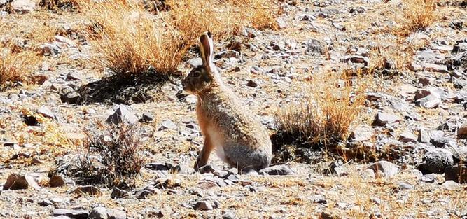 这是在特布拉村村外拍摄到的野兔。新华社记者 沈虹冰 摄(手机照片,3月19日摄)