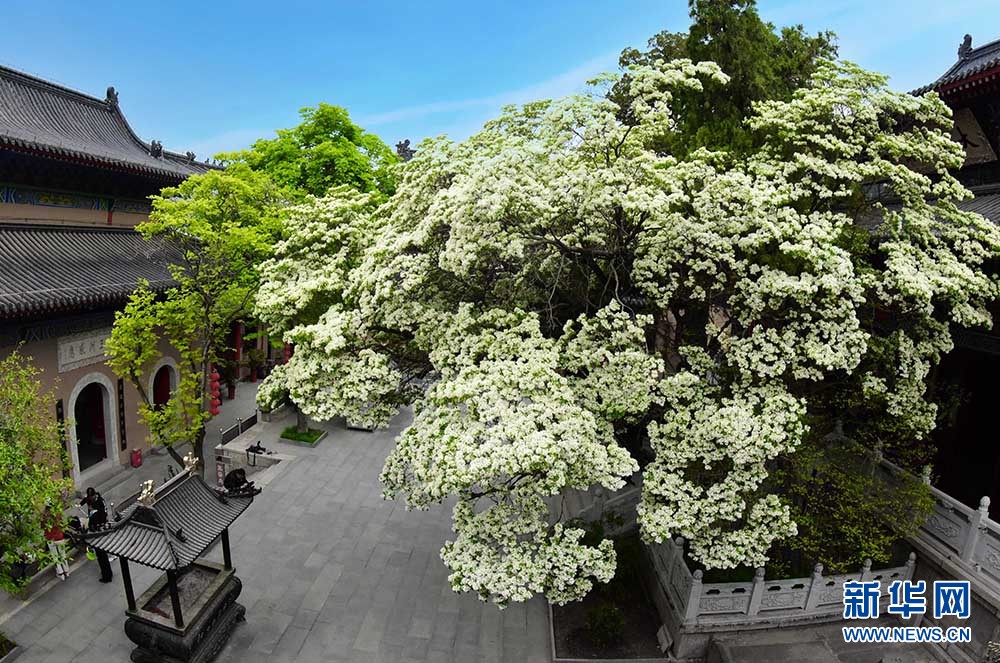 近日,位于江苏省连云港市海州区孔望山景区龙洞庵内的糯米茶古树,绽放新花。满树白花,如覆霜盖雪,馨香宜人,蔚然壮观。