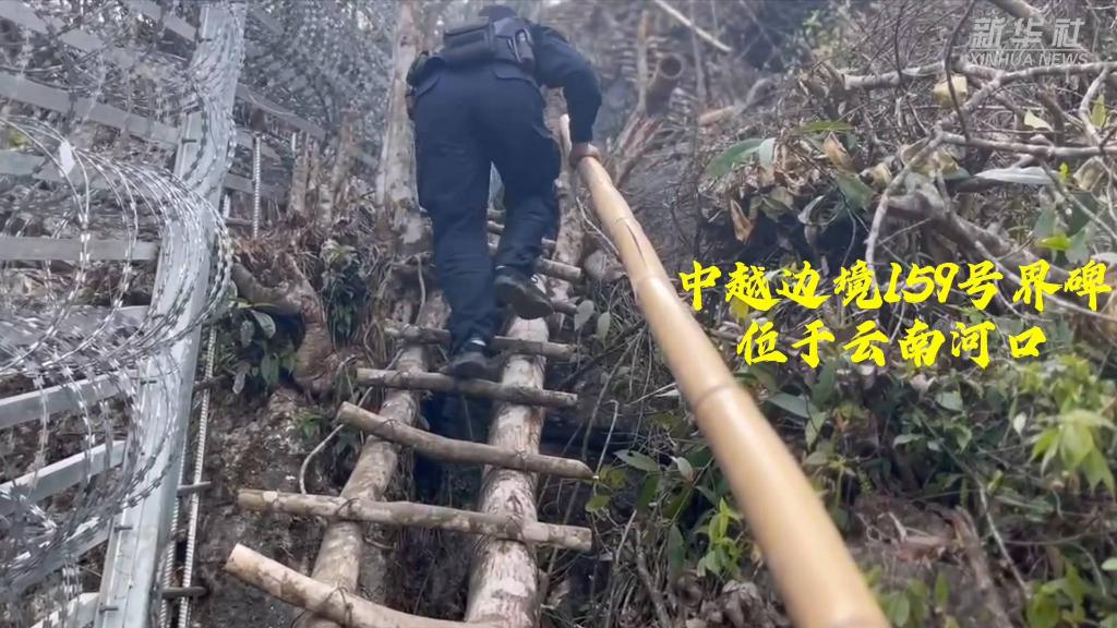 中越边境159号界碑位于云南省河口县,界碑区域是方圆数公里内视野最开阔的地方,十分利于移民管理警察观察边境情况,而通往界碑唯一的路是这条顺着山体“飞升”直上的小路,是民辅警边境巡逻必经路段。