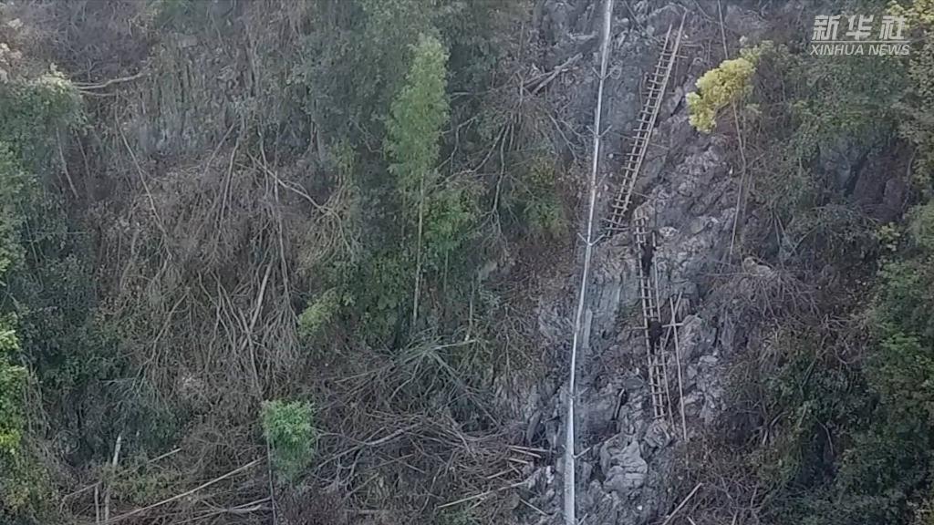 为了便于开展巡逻管控任务,当地干部群众于今年年初用树枝和竹竿制成梯子,固定在石壁之上,当地人称之为“天梯”。