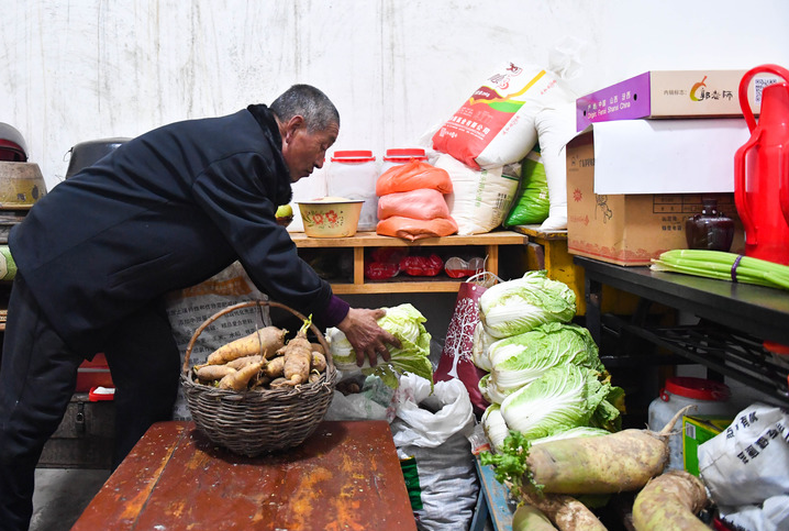 段村村民蔡文明整理自家产的蔬菜。(新华社记者柴婷摄)