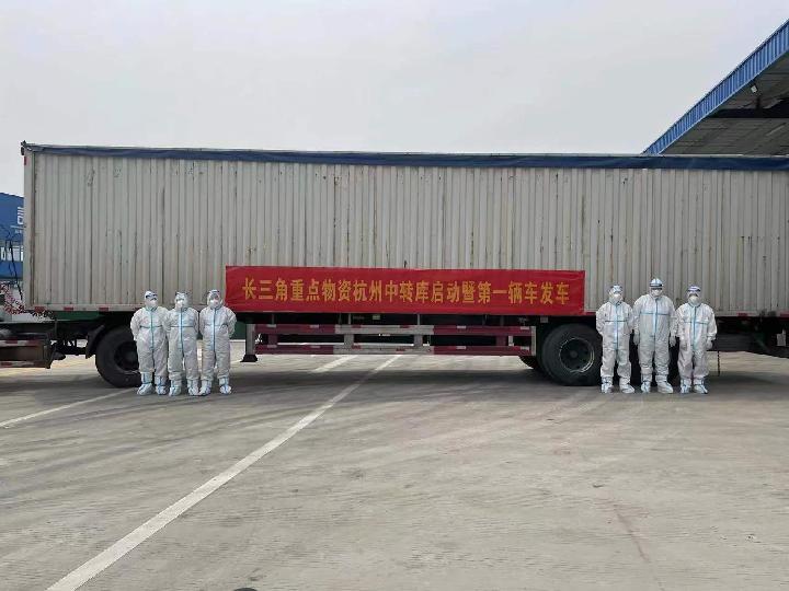 18日,长三角重要物资杭州中转库启动暨第一辆车发车。(受访对象供图)