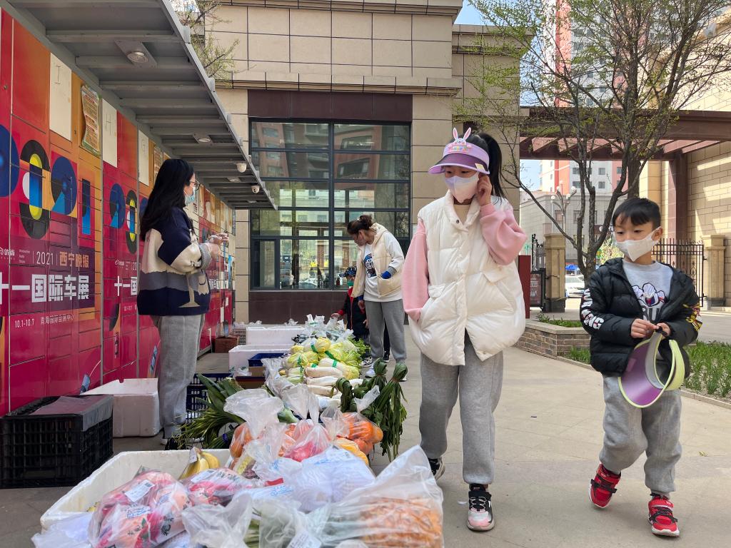 4月21日,西宁市城北区一小区市民正在小区内采购物资。(新华社记者 解统强 摄)