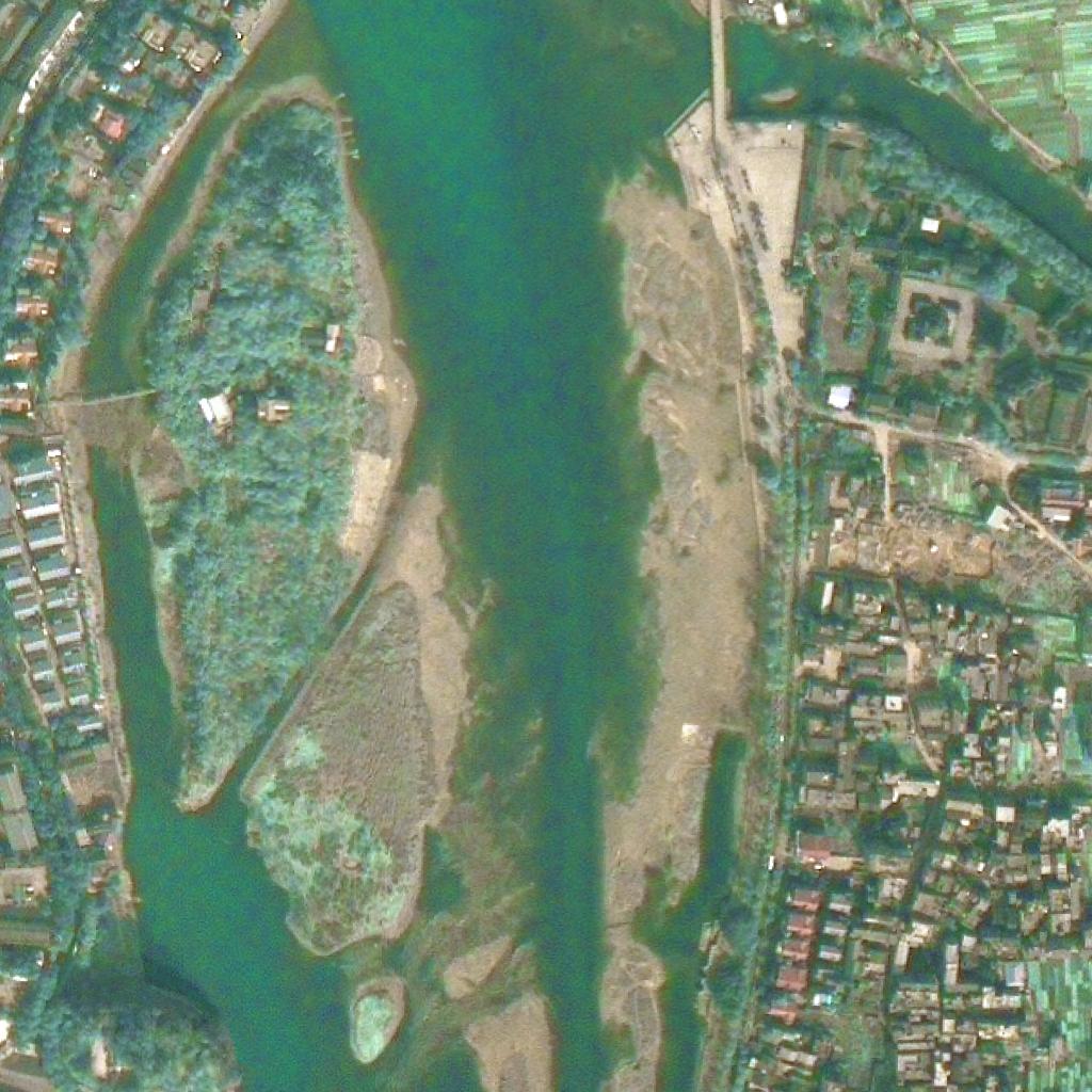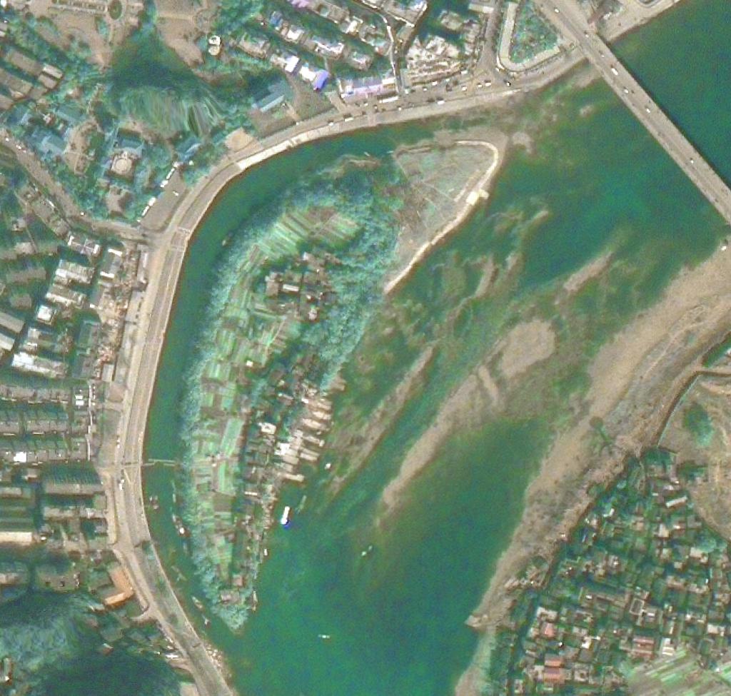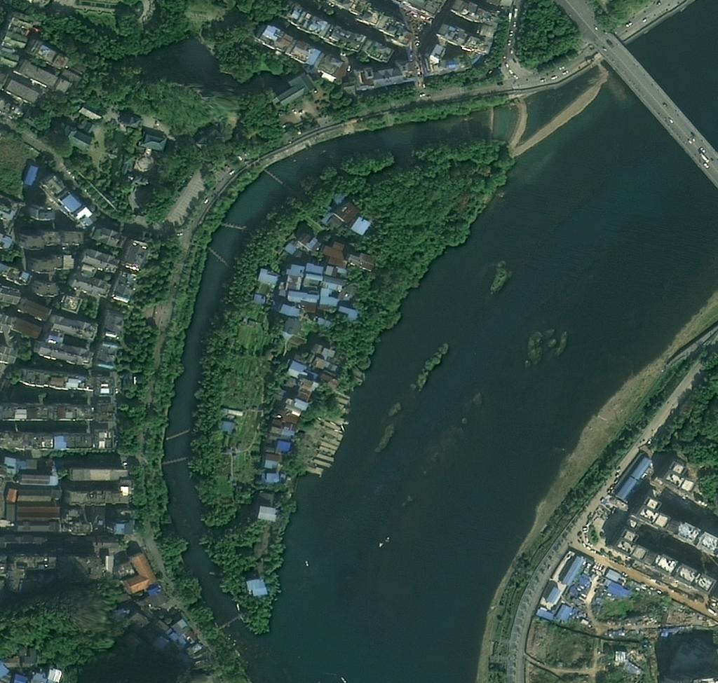 漓江市区段洲岛伏龙洲的对比图片,上图拍摄于2006年2月,下图拍摄于2021年11月。(图片来源:广西自然资源遥感院/自然资源广西卫星应用技术中心)