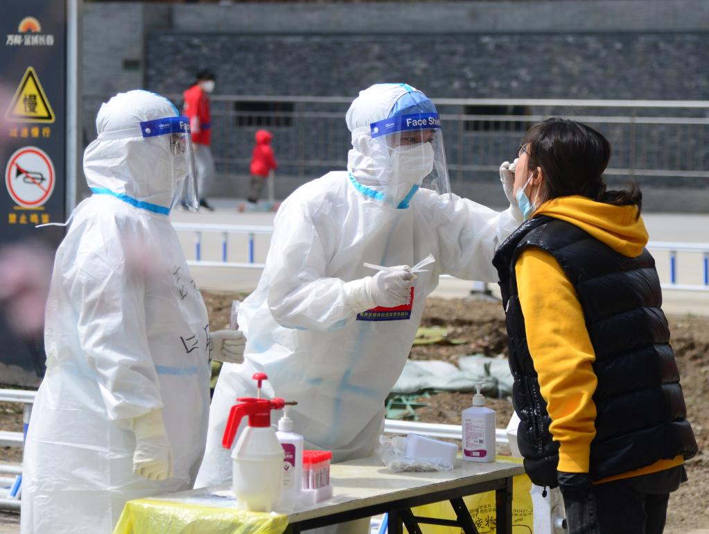 4月20日,在长春市一处核酸检测点,居民接受核酸检测采样。新华社记者张建 摄
