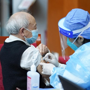 4月18日,北京,医护人员为老年人接种新冠疫苗。新华社记者鞠焕宗 摄